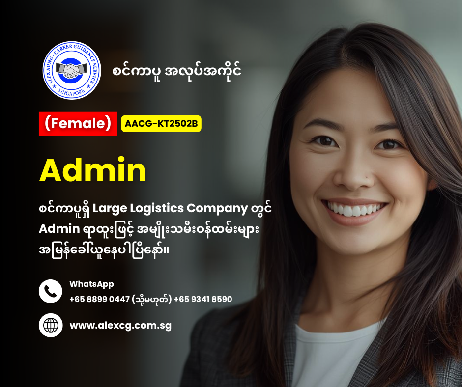 WhatsApp +65 8899 0447 / +65 9341 8590 မှာ အလုပ်လျှောက်ပါ။