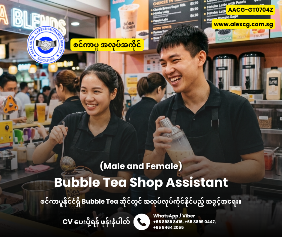 WhatsApp / Viber +65 8899 0447, +65 8989 8416, +65 8464 2055 မှာ အလုပ်လျှောက်ပါ။