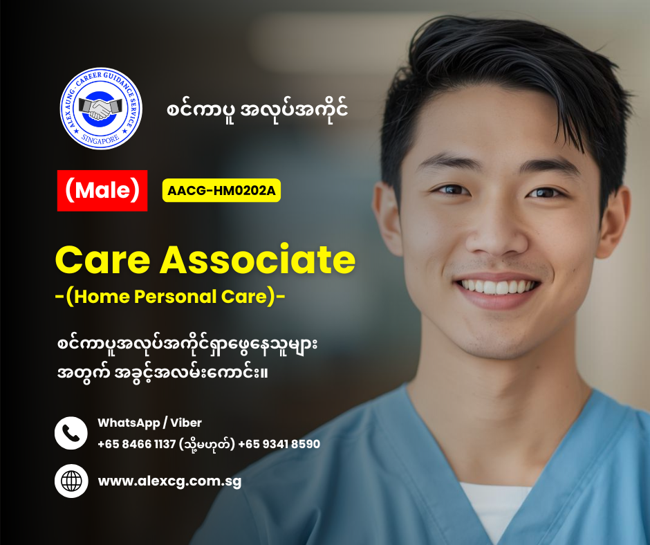 • Care Associate လုပ်ဖူးသည့် လုပ်ငန်းအတွေ့အကြုံရှိသူ။