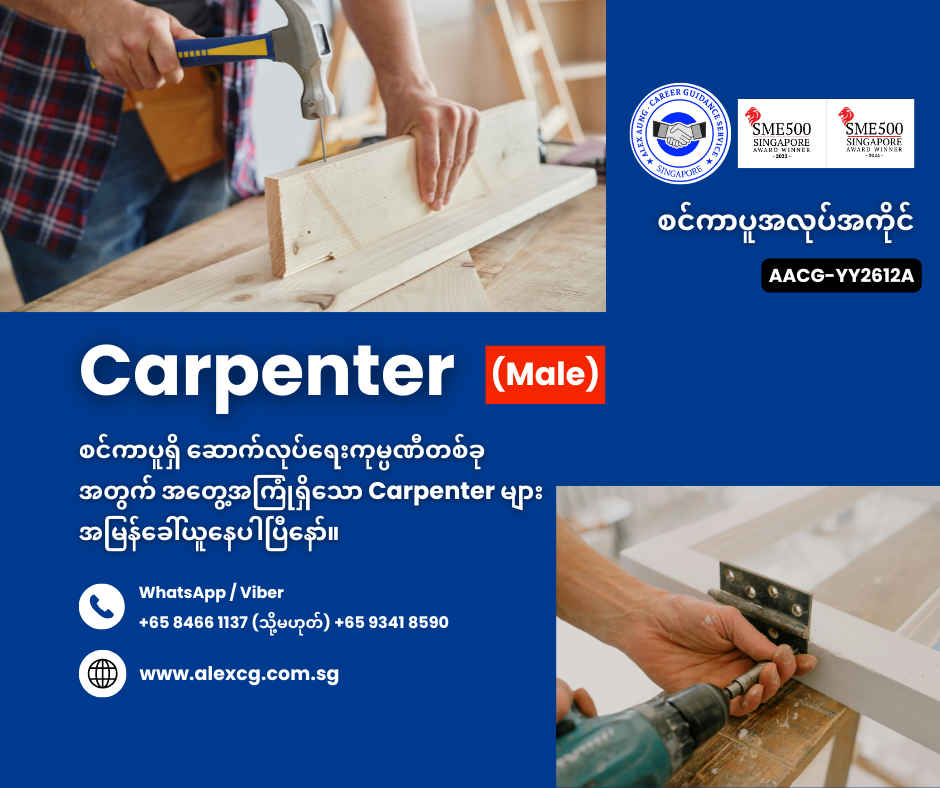 • Carpenter လုပ်ဖူးသည့် လုပ်ငန်းအတွေ့အကြုံရှိသူ။
