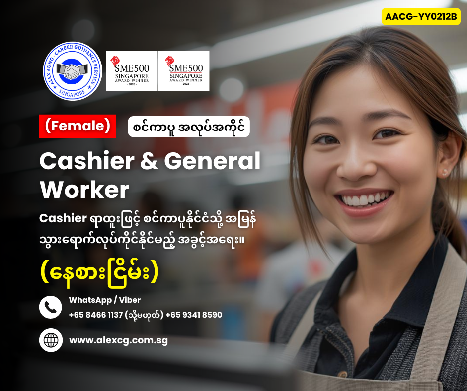 WhatsApp/Viber +65 8466 1137 / +65 9341 8590 မှာ အလုပ်လျှောက်ပါ။