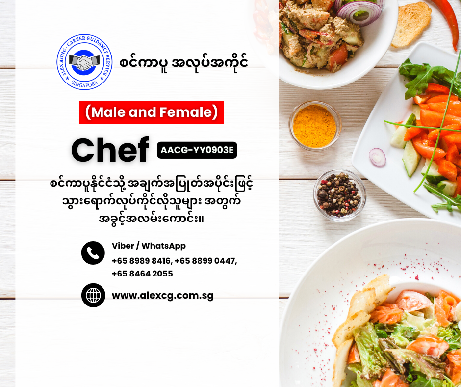 WhatsApp / Viber +65 8899 0447, +65 8989 8416, +65 8464 2055 မှာ အလုပ်လျှောက်ပါ။
