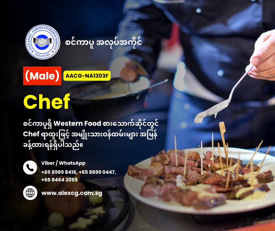 WhatsApp / Viber +65 8899 0447, +65 8989 8416, +65 8464 2055 မှာ အလုပ်လျှောက်ပါ။