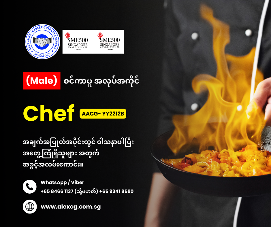WhatsApp/Viber +65 8466 1137 / +65 9341 8590 မှာ အလုပ်လျှောက်ပါ။