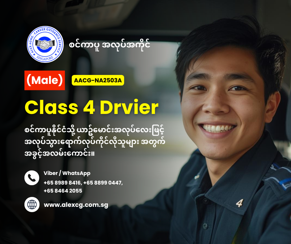 WhatsApp / Viber +65 8899 0447, +65 8989 8416, +65 8464 2055 မှာ အလုပ်လျှောက်ပါ။