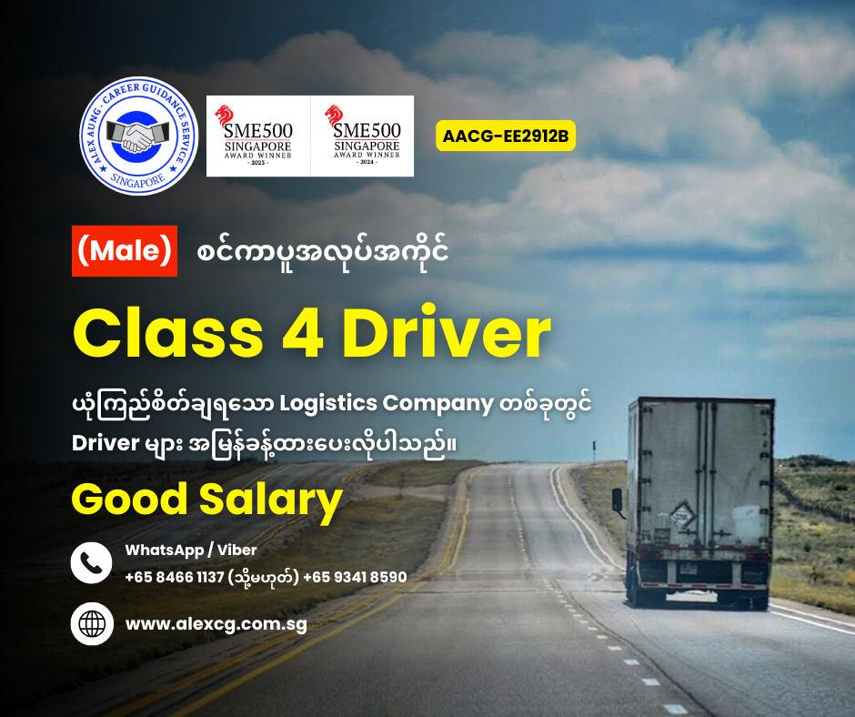 • စင်ကာပူ Class 4 Driver လိုင်စင်ရှိသူ။