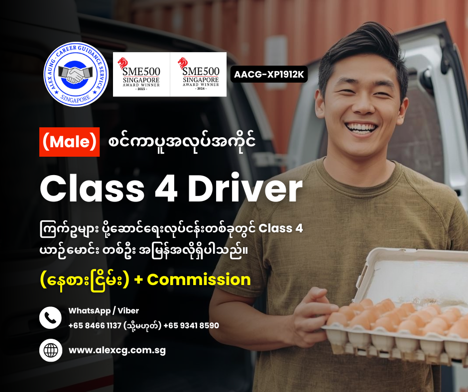 • စင်ကာပူ Class 4 Driver လိုင်စင်ရှိသူ။