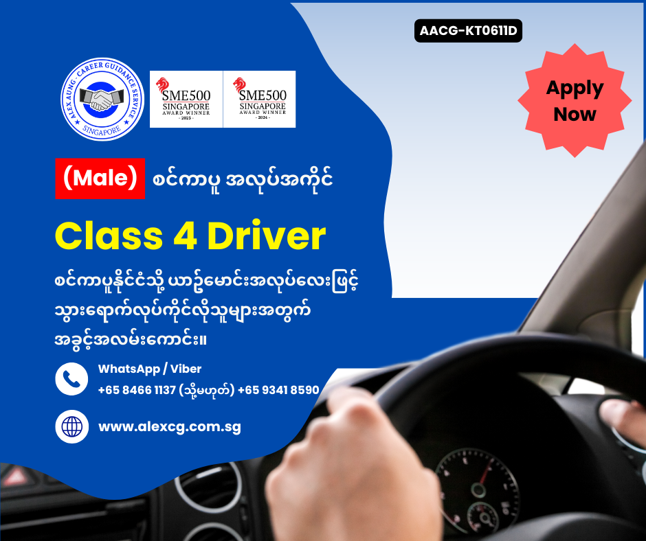 - Class 4 Driver ယာဥ်မောင်းလိုင်စင်ရှိသူ။