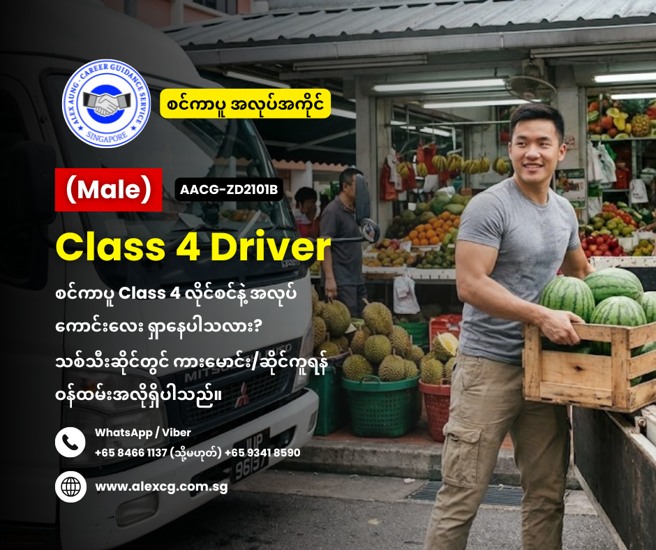 - Singapore Class 4 Driver လိုင်စင်ရှိသူ။