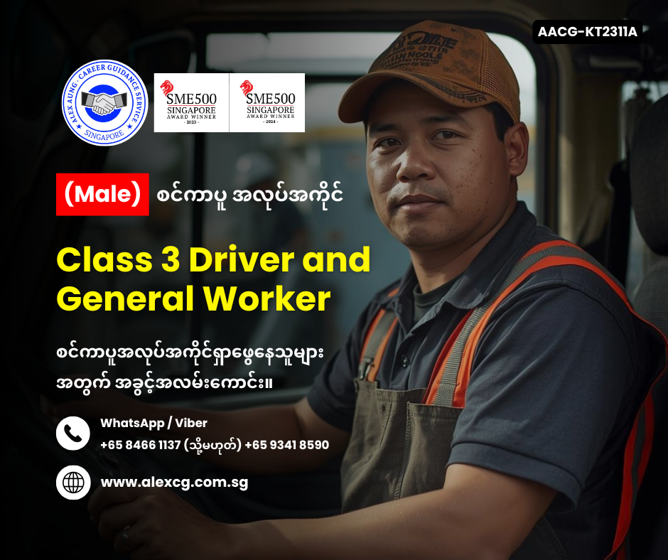 - စင်ကာပူ Class 3 Driver လိုင်စင်ရှိသူ။