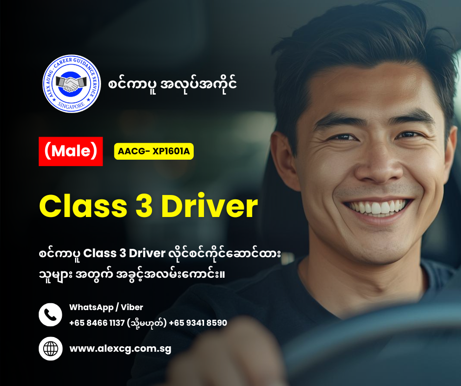 • စင်ကာပူ Class 3 Driver လိုင်စင်ရှိသူ။