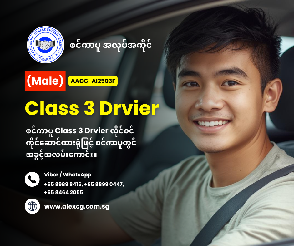WhatsApp / Viber +65 8899 0447, +65 8989 8416, +65 8464 2055 မှာ အလုပ်လျှောက်ပါ။
