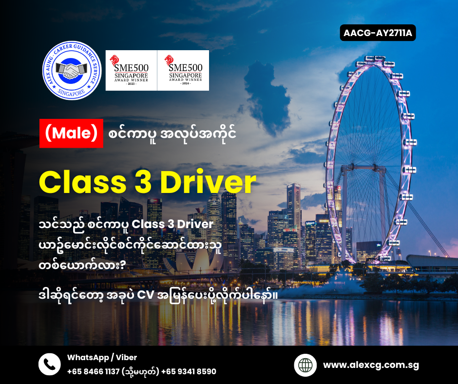 - စင်ကာပူ Class 3 Driver လိုင်စင်ရှိသူ။