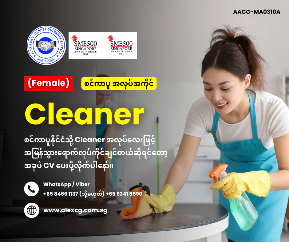 - Singapore တွင် TEP ဖြင့် Cleaner အတွေ့အကြုံရှိသူ (သို့မဟုတ်) စင်ကာပူတွင် အနည်းဆုံး Cleaner ၂ နှစ် လုပ်ဖူးသူ။