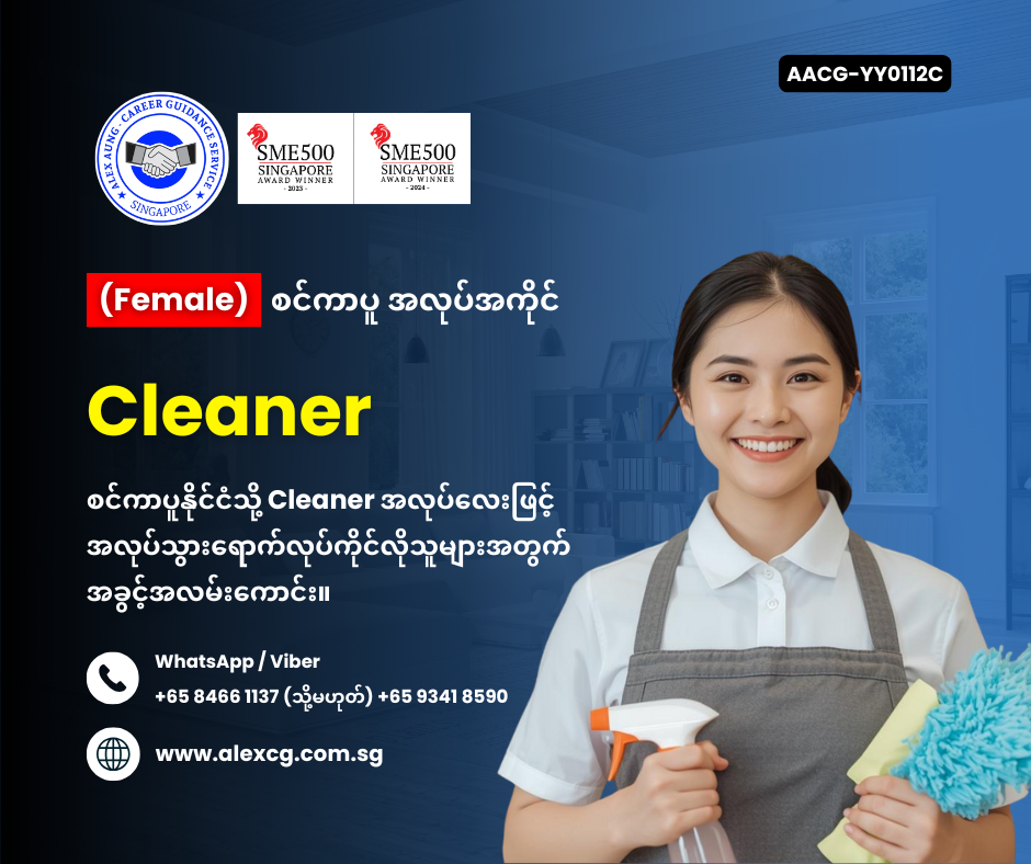 - Cleaner လုပ်ဖူးသည့်လုပ်ငန်းအတွေ့ကြုံရှိသူ။