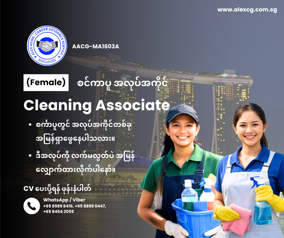 WhatsApp / Viber +65 8899 0447, +65 8989 8416, +65 8464 2055 မှာ အလုပ်လျှောက်ပါ။