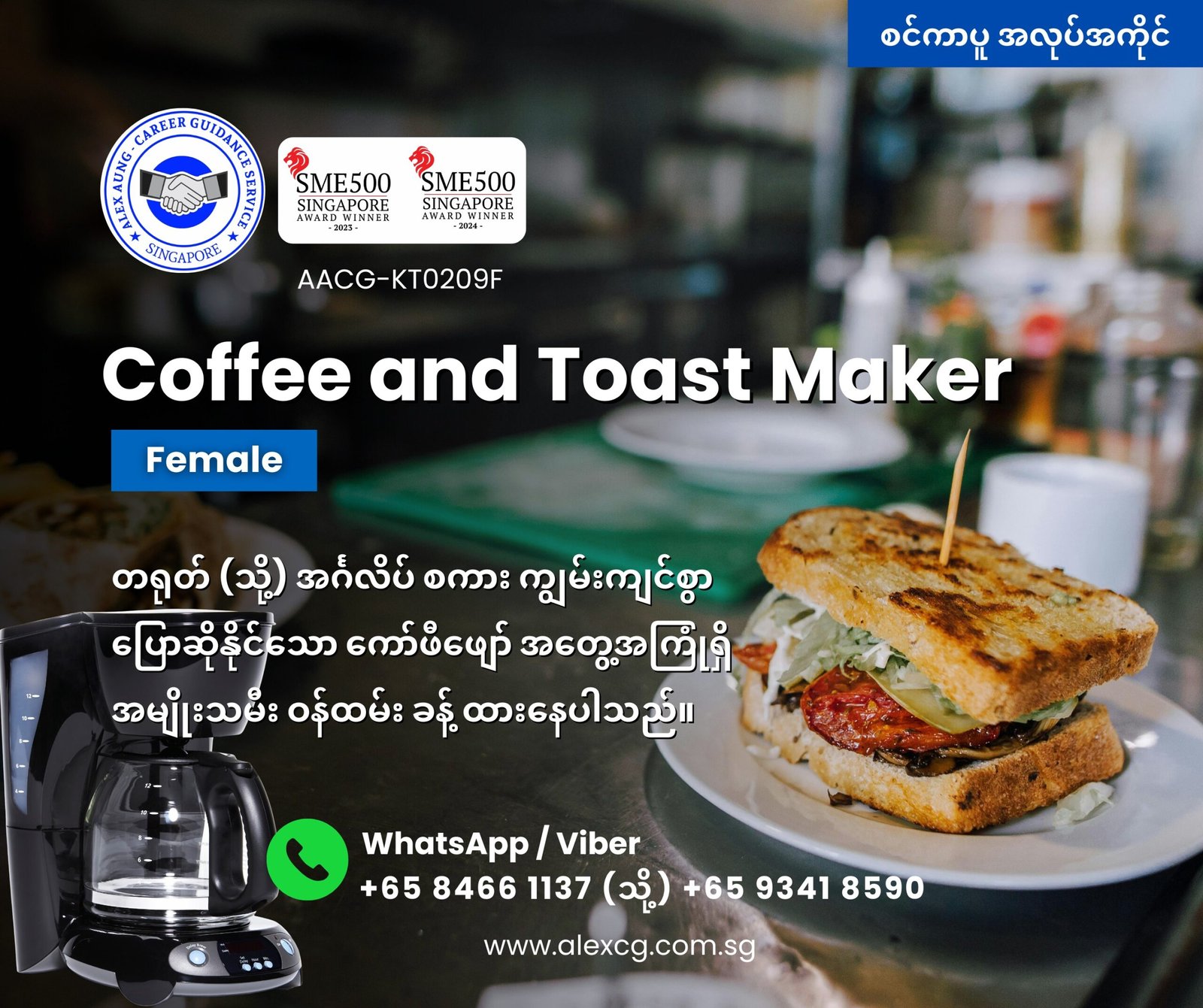 WhatsApp/Viber +65 8466 1137 / +65 9341 8590 မှာ အလုပ်လျှောက်ပါ။