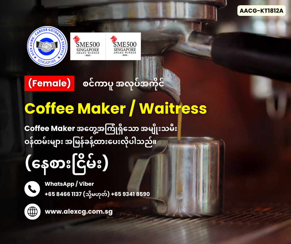 - Coffee Maker လုပ်ဖူးသည့် လုပ်ငန်းအတွေ့အကြုံရှိသူ။