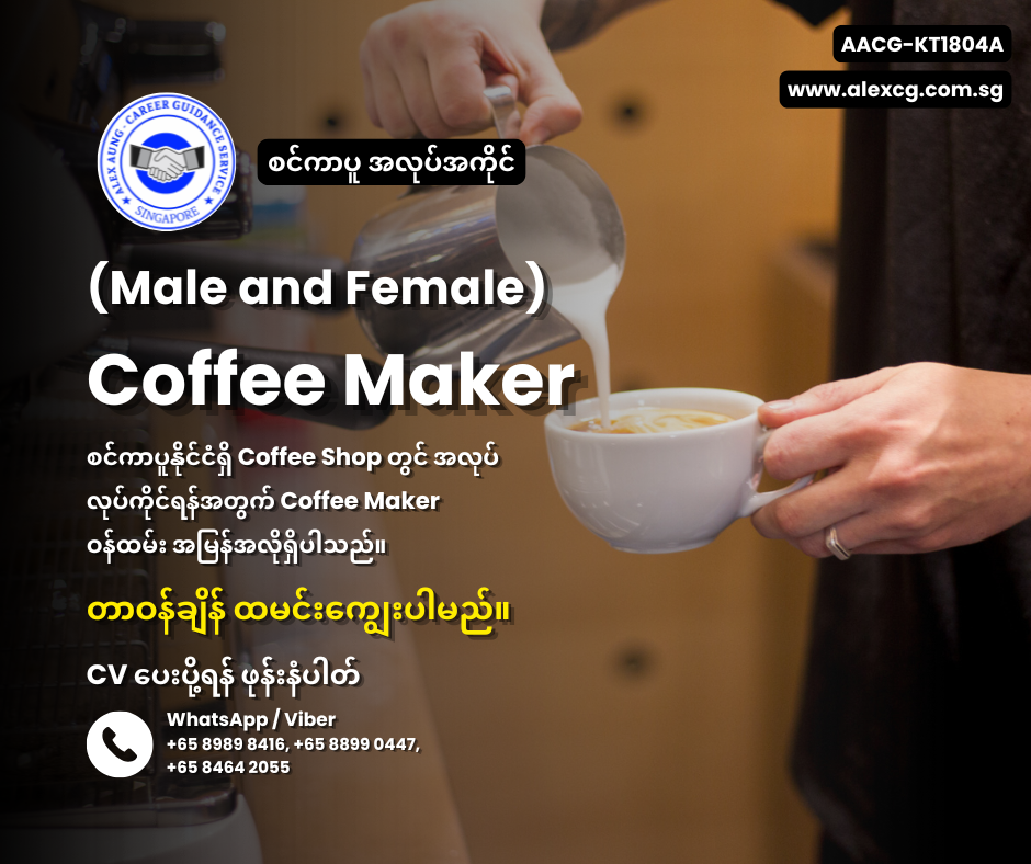 WhatsApp / Viber +65 8989 8416,+65 8899 0447, +65 8464 2055 မှာ အလုပ်လျှောက်ပါ။