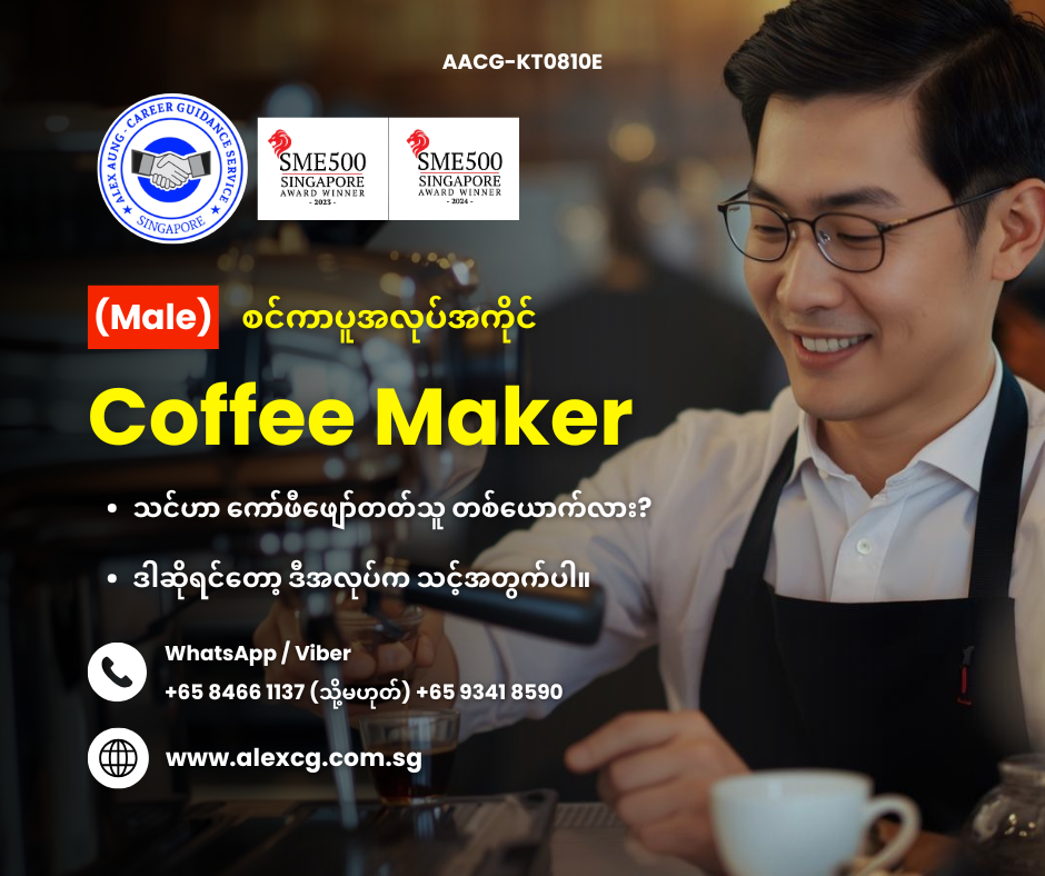 - စင်္ကာပူတွင် Coffee Maker အတွေ့အကြုံရှိသူ။
