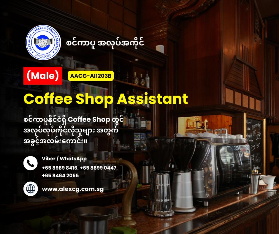 WhatsApp / Viber +65 8899 0447, +65 8989 8416, +65 8464 2055 မှာ အလုပ်လျှောက်ပါ။
