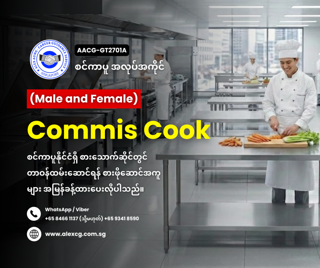 WhatsApp/Viber +65 8466 1137 / +65 9341 8590 မှာ အလုပ်လျှောက်ပါ။