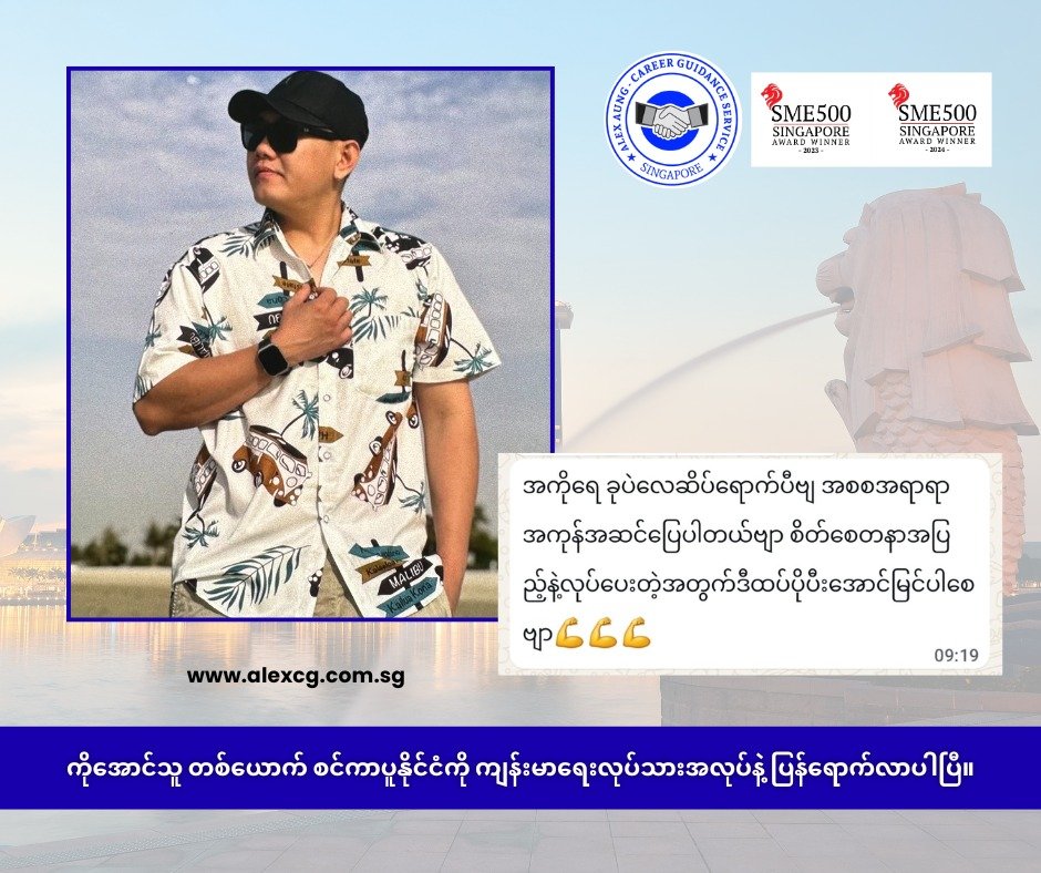 စင်ကာပူနိုင်ငံမှာ ပျော်ရွှင်စွာ အလုပ်လုပ်ကိုင်နိုင်ပါစေလို့