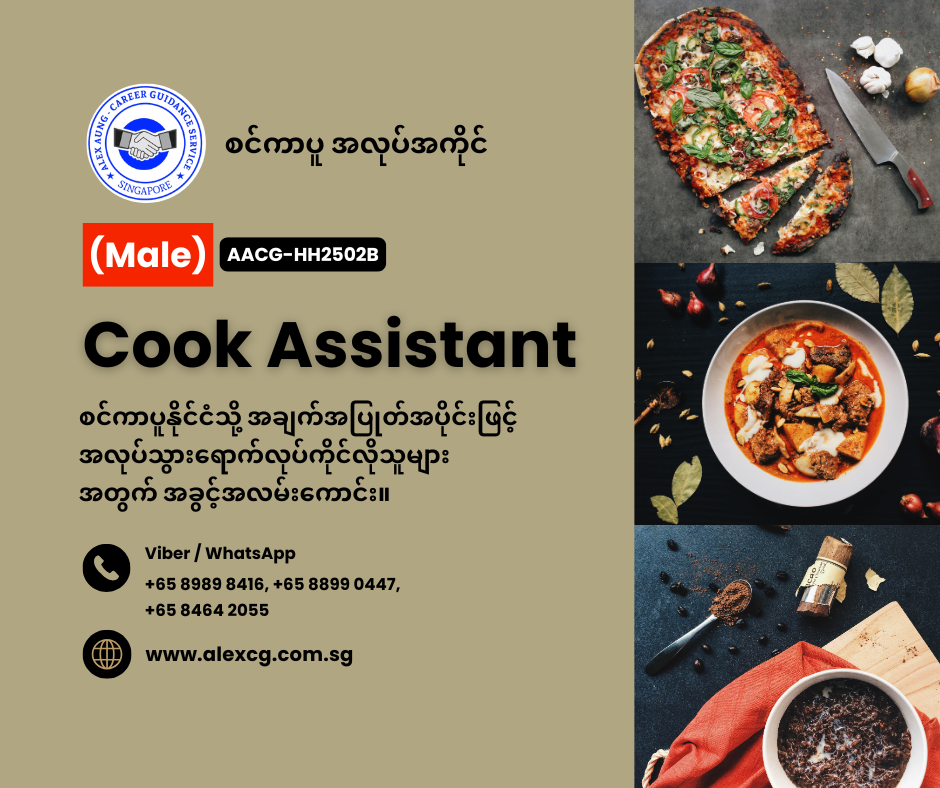 WhatsApp +65 8899 0447, +65 8989 8416, +65 8464 2055 မှာ အလုပ်လျှောက်ပါ။