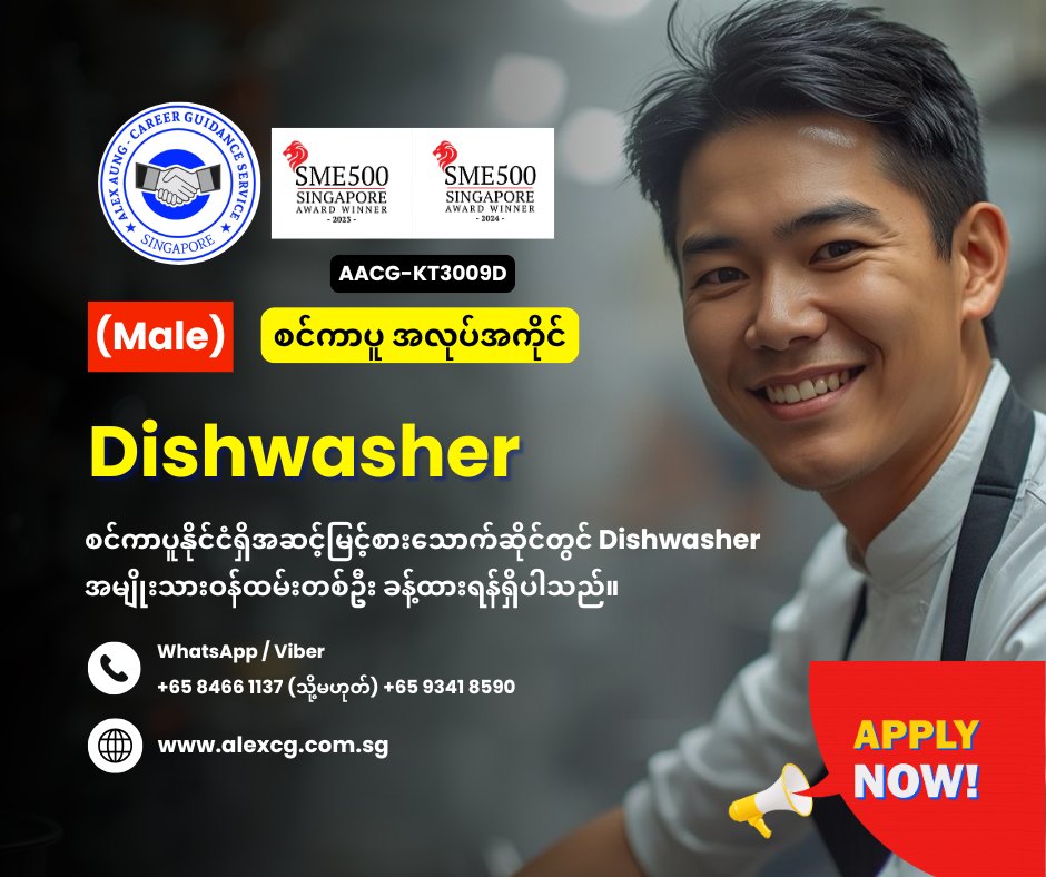 WhatsApp/Viber +65 8466 1137 / +65 9341 8590 မှာ အလုပ်လျှောက်ပါ။
