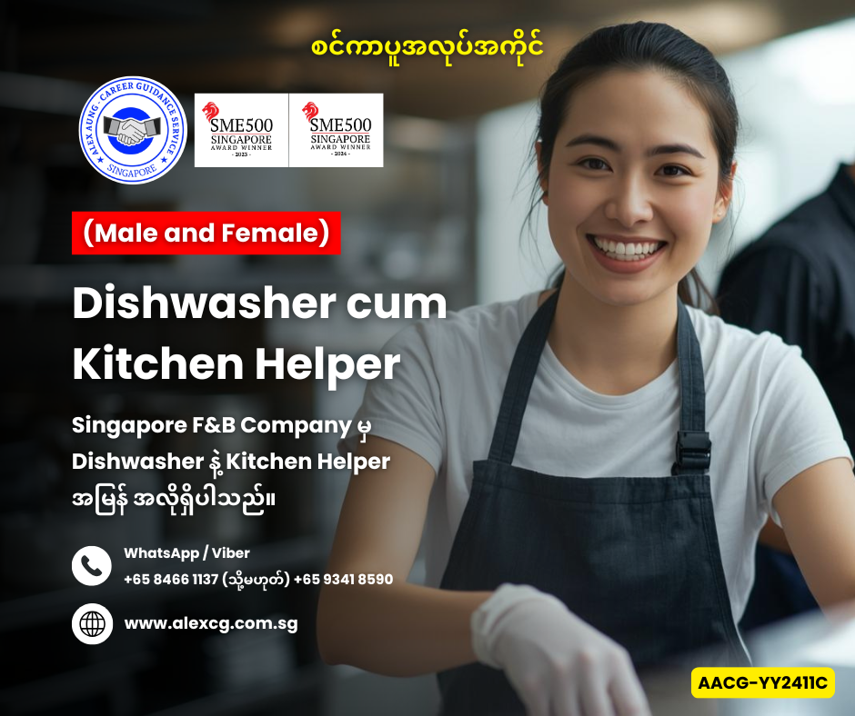 WhatsApp/Viber +65 8466 1137 / +65 9341 8590 မှာ အလုပ်လျှောက်ပါ။