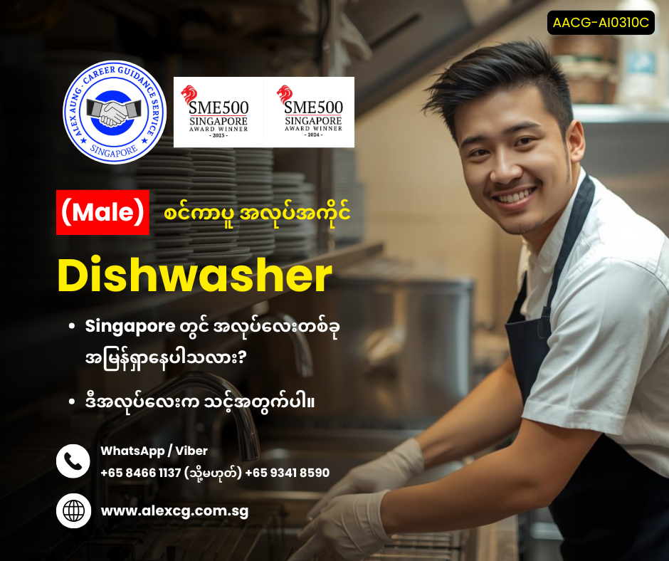 • Dishwasher လုပ်ဖူးသည့် လုပ်ငန်းအတွေ့အကြုံရှိသူ။