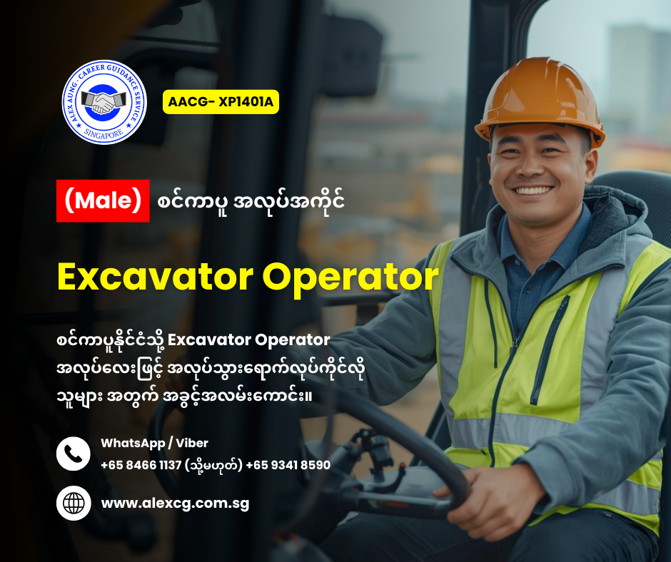 • Singapore BCA Hydraulic Excavator Operation Certificate ရှိရပါမည်။