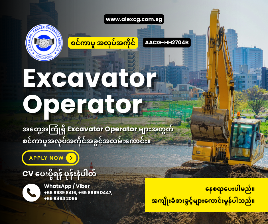 WhatsApp / Viber +65 8989 8416, +65 8899 0447, +65 8464 2055 မှာ အလုပ်လျှောက်ပါ။