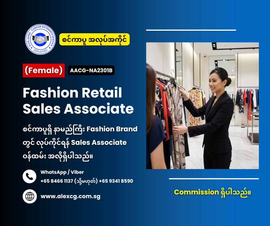 WhatsApp/Viber +65 8466 1137 / +65 9341 8590 မှာ အလုပ်လျှောက်ပါ။