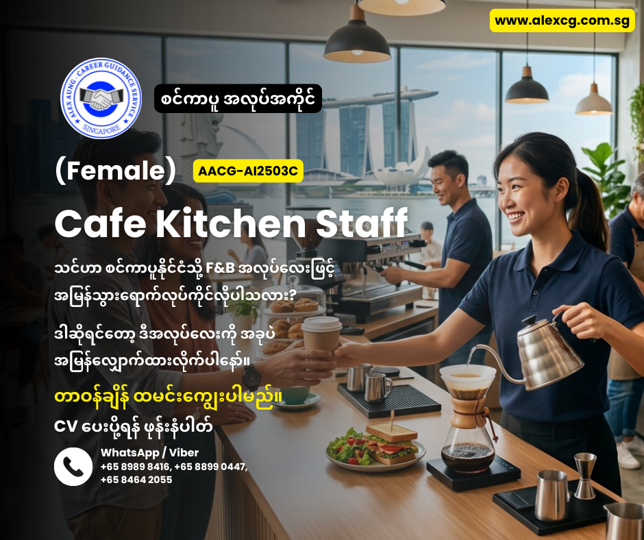 WhatsApp / Viber +65 8899 0447, +65 8989 8416, +65 8464 2055 မှာ အလုပ်လျှောက်ပါ။