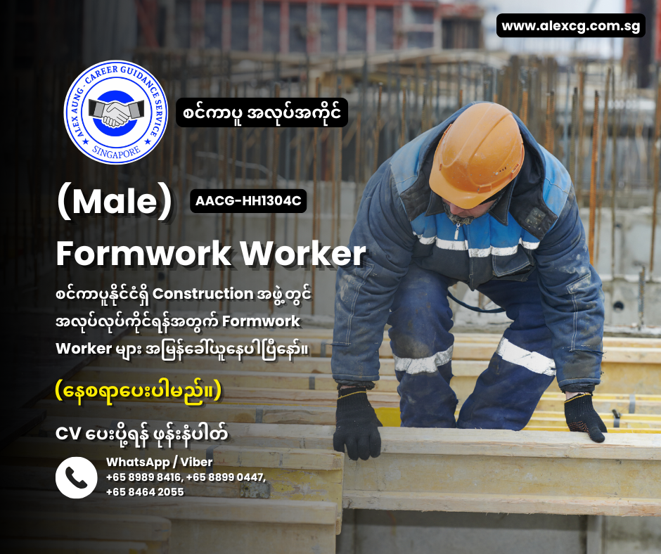 WhatsApp / Viber +65 8989 8416,+65 8899 0447, +65 8464 2055 မှာ အလုပ်လျှောက်ပါ။