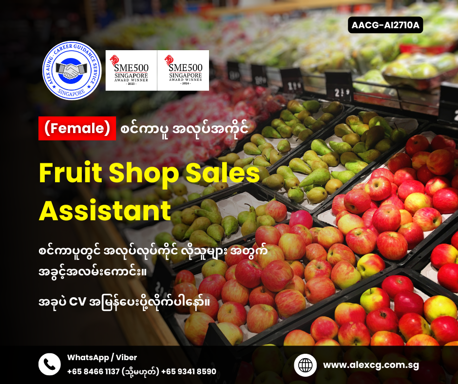 WhatsApp/Viber +65 8466 1137 / +65 9341 8590 မှာ အလုပ်လျှောက်ပါ။