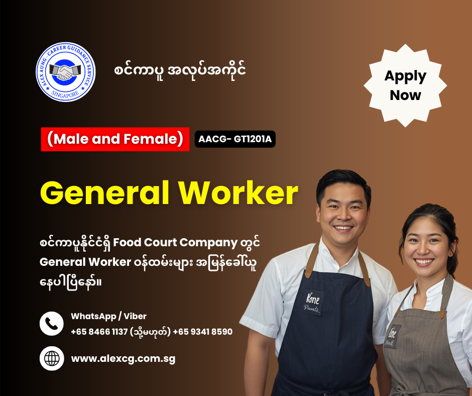 WhatsApp/Viber +65 8466 1137 / +65 9341 8590 မှာ အလုပ်လျှောက်ပါ။