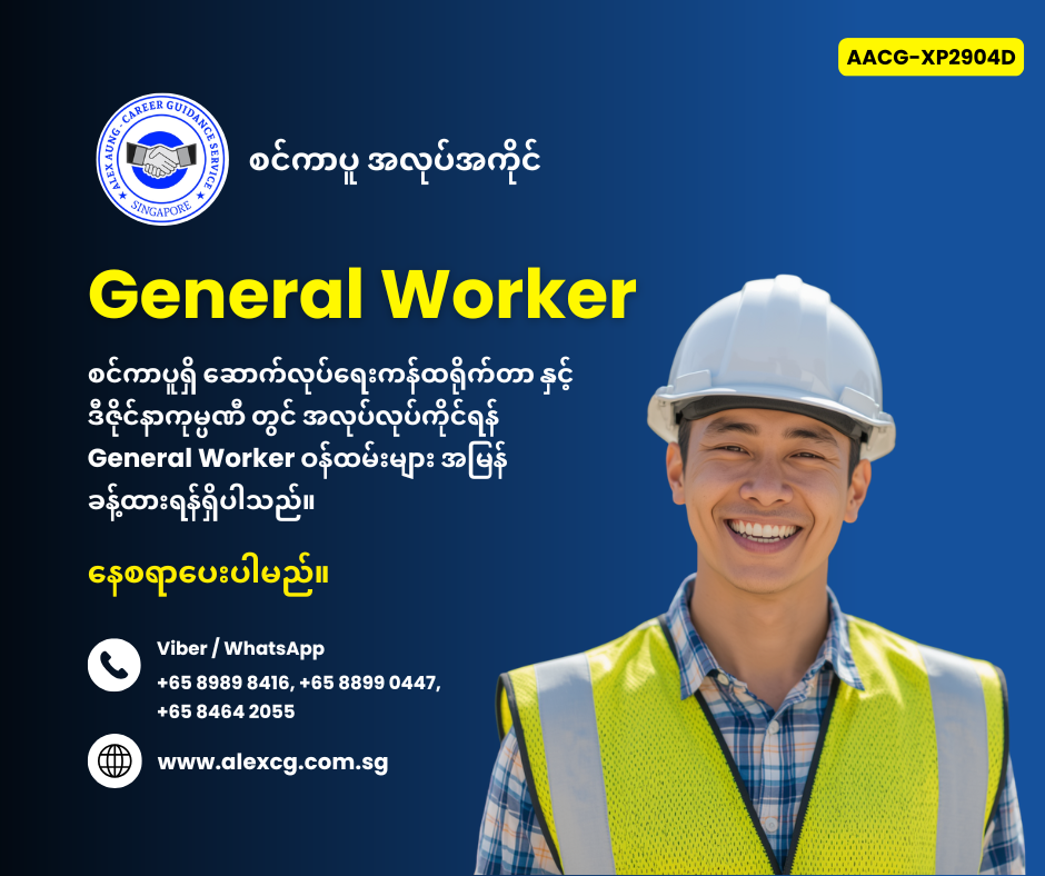 WhatsApp / Viber +65 8989 8416, +65 8899 0447, +65 8464 2055 မှာ အလုပ်လျှောက်ပါ။