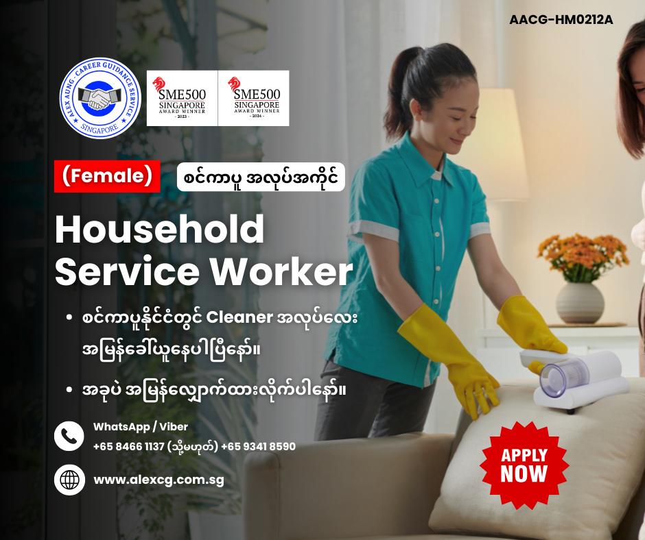 WhatsApp/Viber +65 8466 1137 / +65 9341 8590 မှာ အလုပ်လျှောက်ပါ။