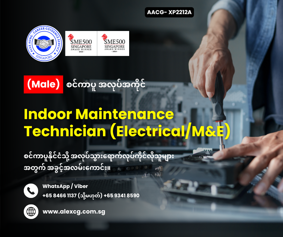 WhatsApp/Viber +65 8466 1137 / +65 9341 8590 မှာ အလုပ်လျှောက်ပါ။