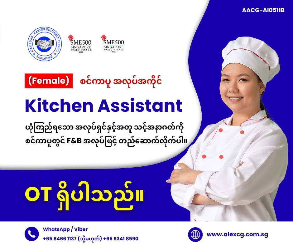 WhatsApp/Viber +65 8466 1137 / +65 9341 8590 မှာ အလုပ်လျှောက်ပါ။