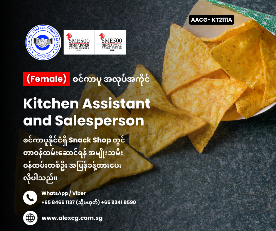 WhatsApp/Viber +65 8466 1137 / +65 9341 8590 မှာ အလုပ်လျှောက်ပါ။