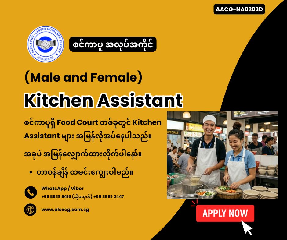 WhatsApp / Viber +65 8899 0447, +65 8989 8416 မှာ အလုပ်လျှောက်ပါ။