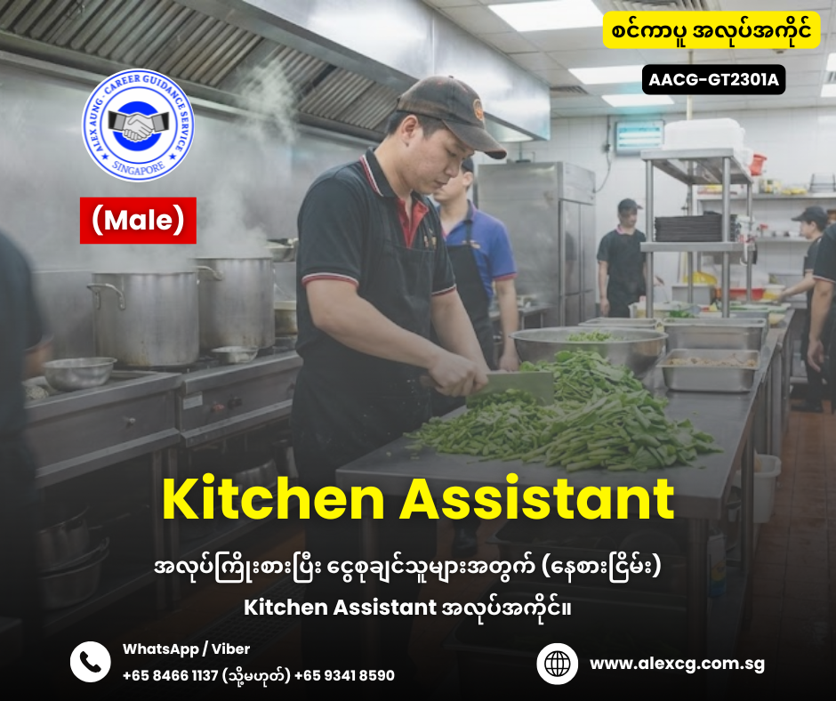 - Kitchen Assistant အလုပ်အတွေ့အကြုံ နှစ်အနည်းငယ်ရှိရမည်။