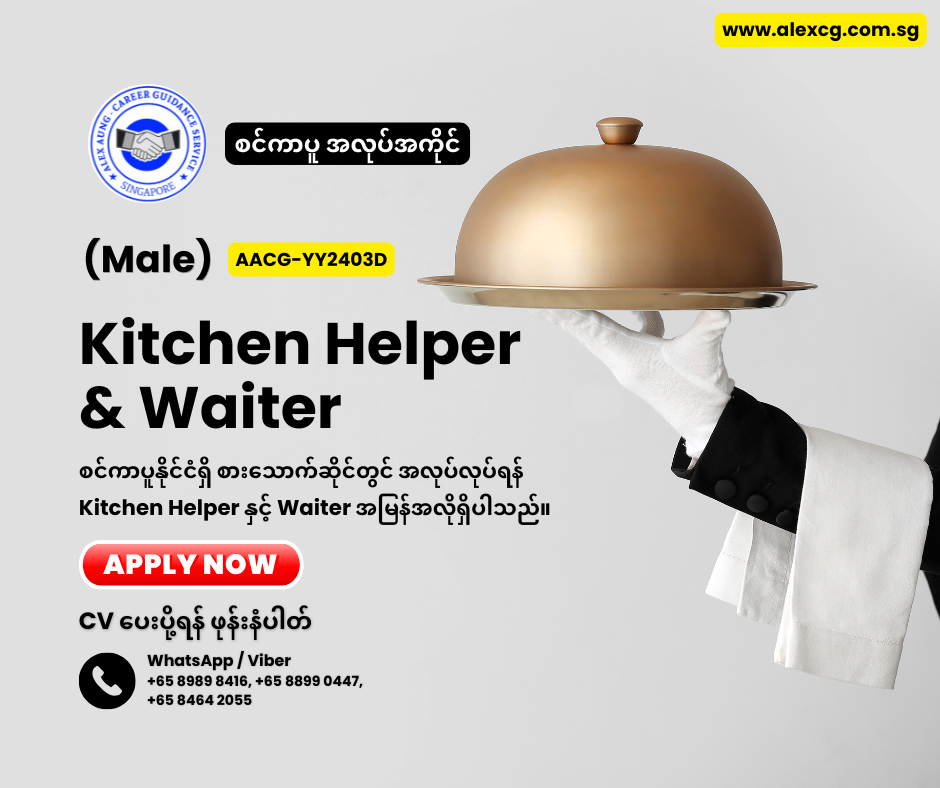 WhatsApp / Viber +65 8899 0447, +65 8989 8416, +65 8464 2055 မှာ အလုပ်လျှောက်ပါ။