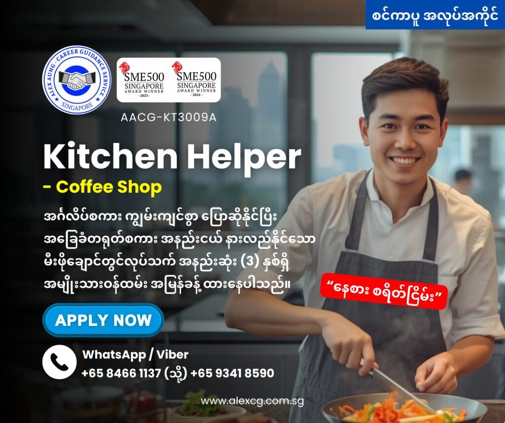 WhatsApp/Viber +65 8466 1137 / +65 9341 8590 မှာ အလုပ်လျှောက်ပါ။