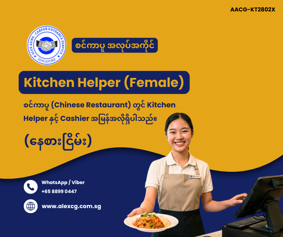 Viber / WhatsApp +65 8899 0447 မှာ အလုပ်လျှောက်ပါ။
