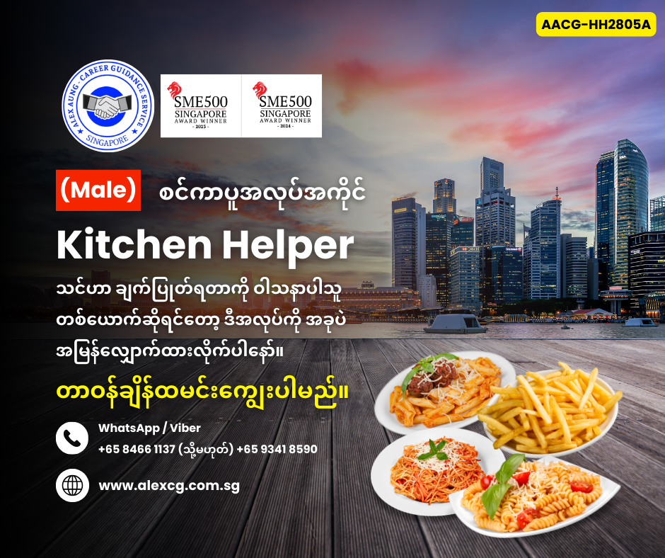 WhatsApp/Viber +65 8466 1137 / +65 9341 8590 မှာ အလုပ်လျှောက်ပါ။