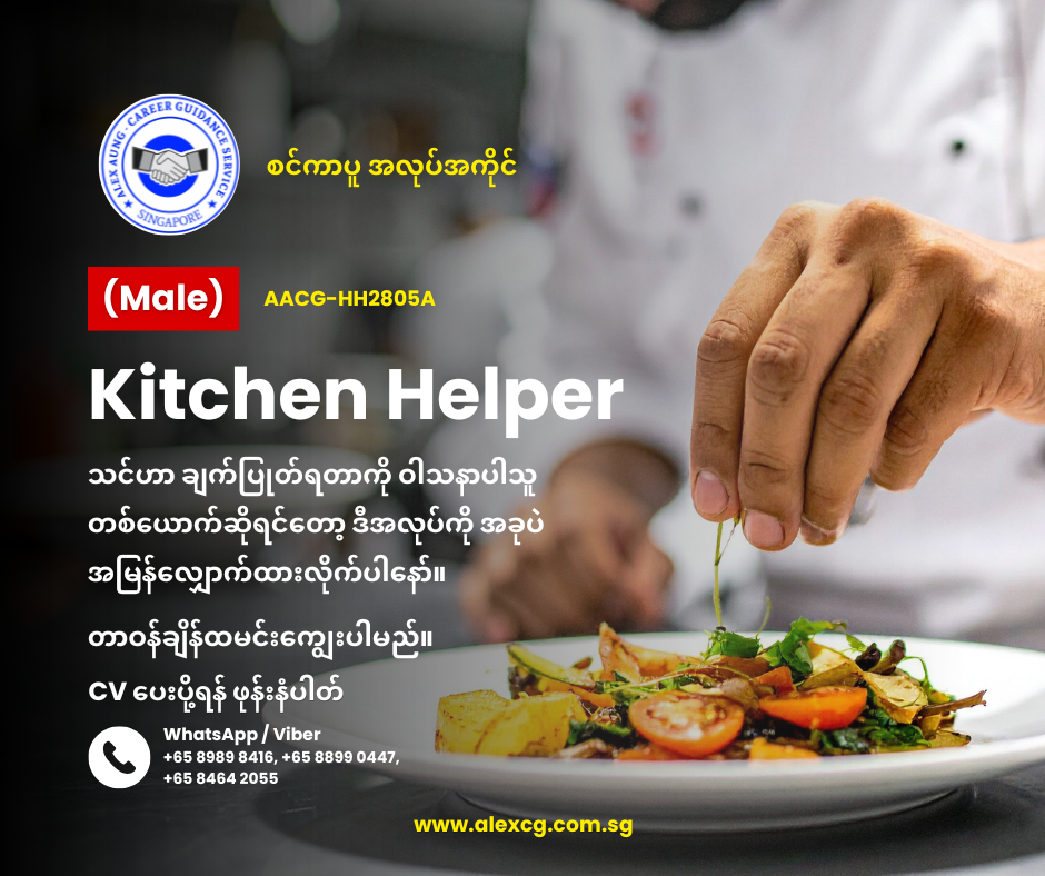 WhatsApp/Viber +65 8899 0447, +65 8989 8416, +65 8464 2055 မှာ အလုပ်လျှောက်ပါ။